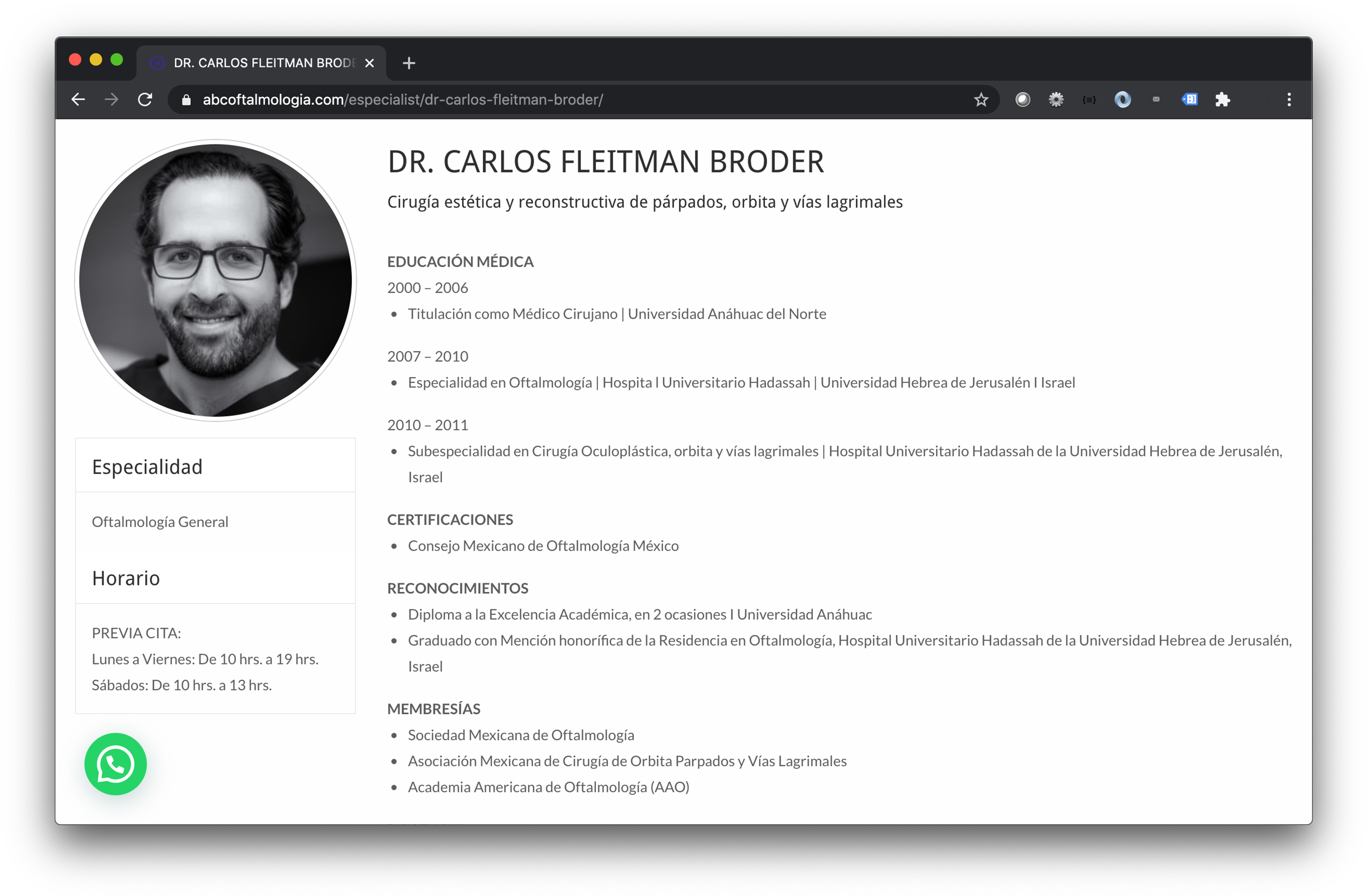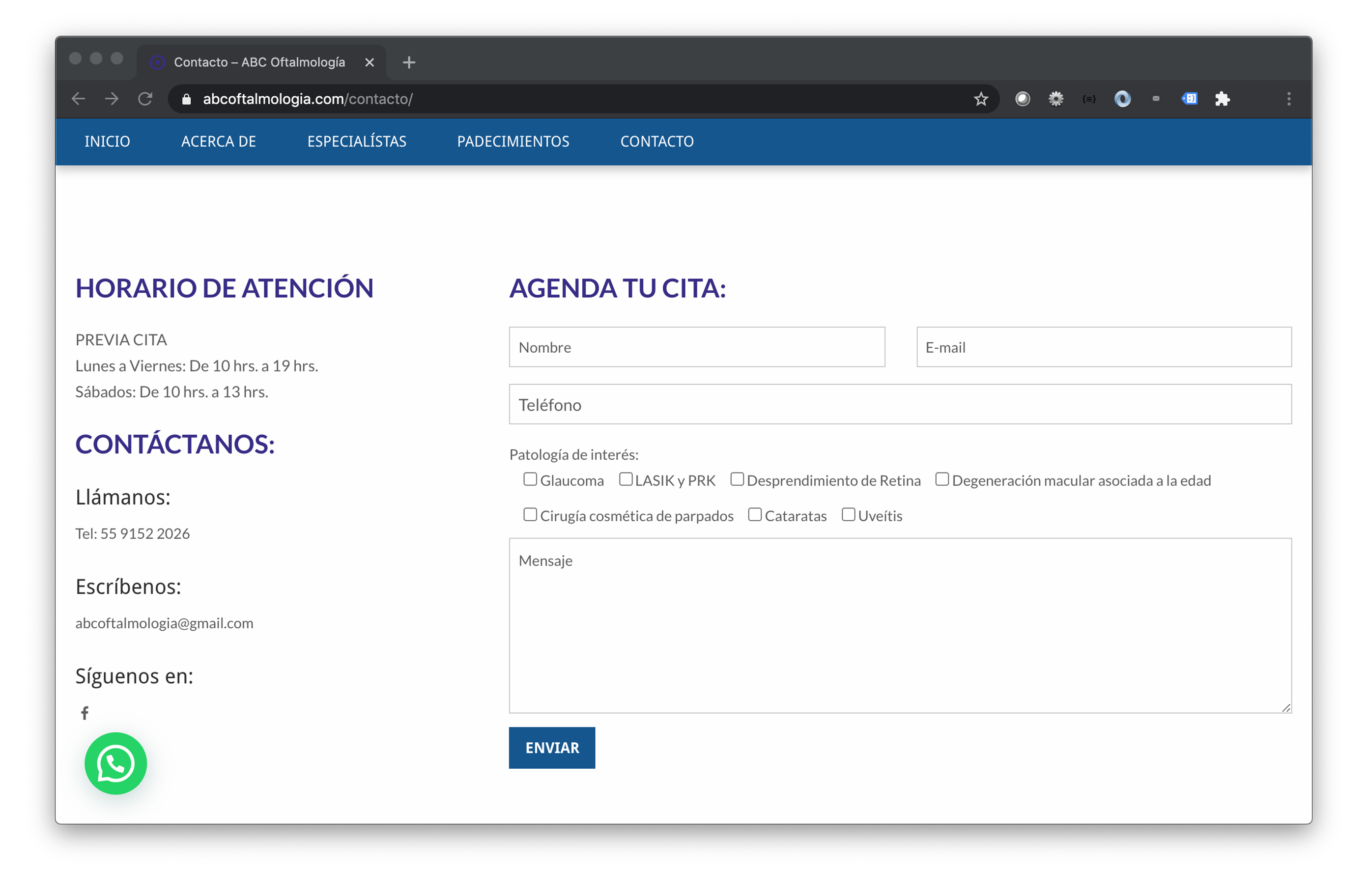Página para clínica oftalmológica.