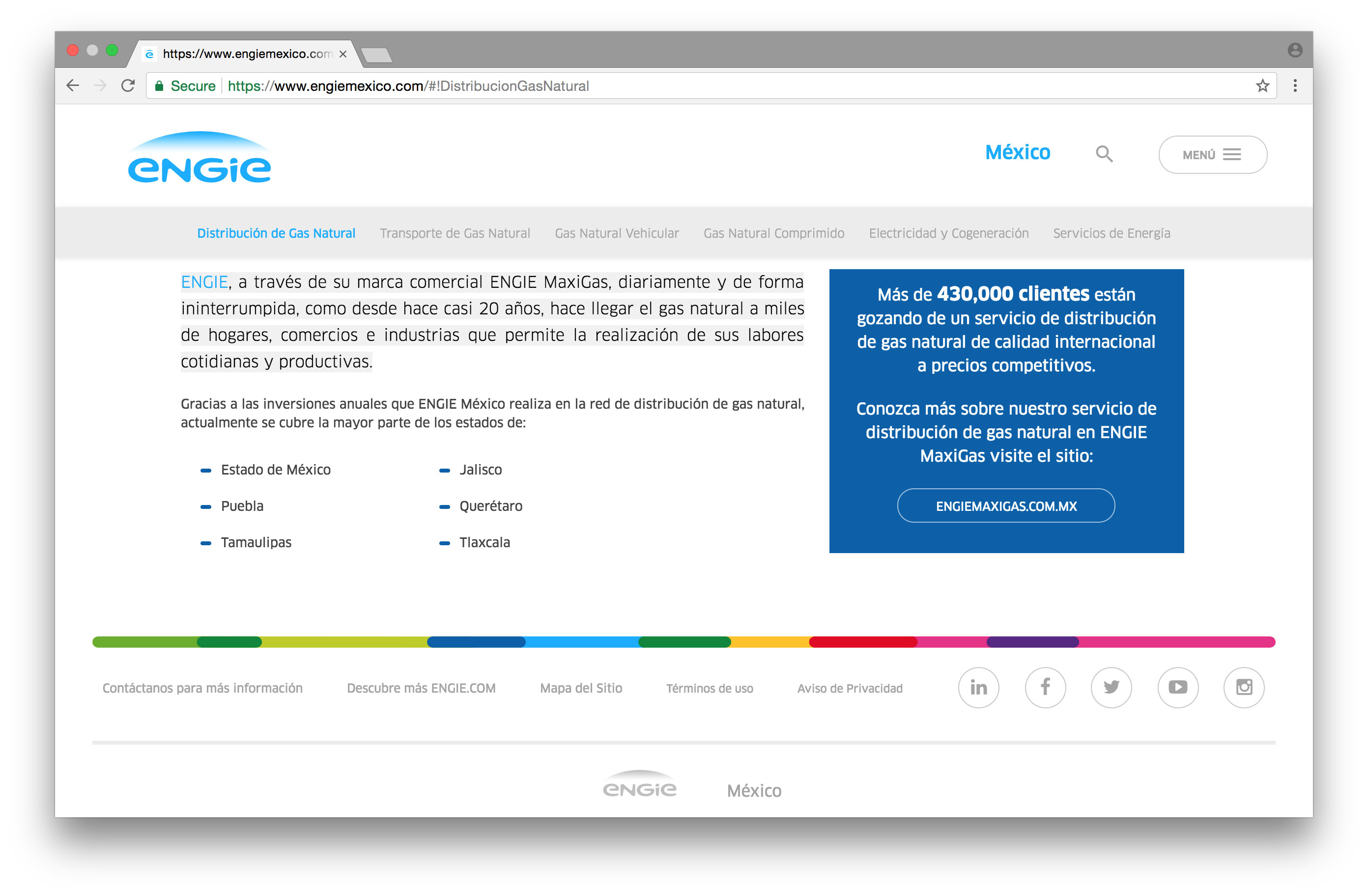 Página web para corporativo ENGIE el cual tiene como producto en México a MaxiGas Natural.