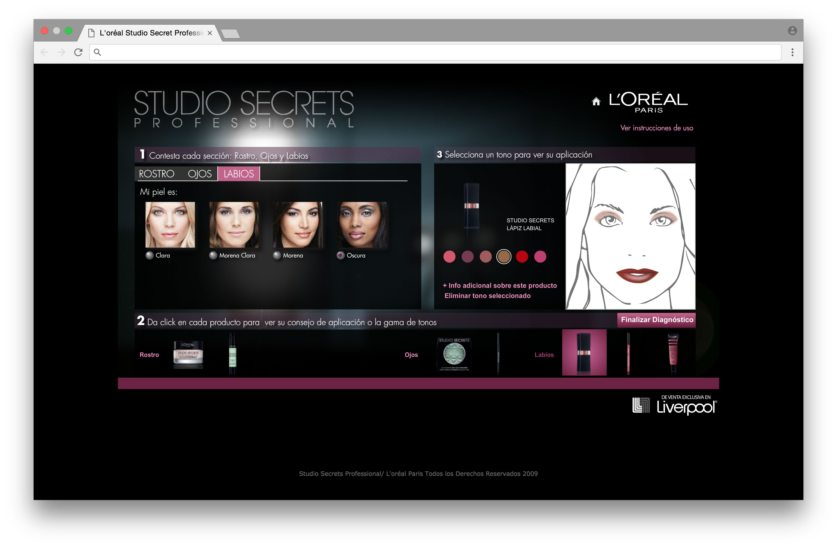 Página para presentación de productos a través de una app que dependiendo el tipo de rostro que la usuaria vaya personalizando, te arroja los productos recomendados.