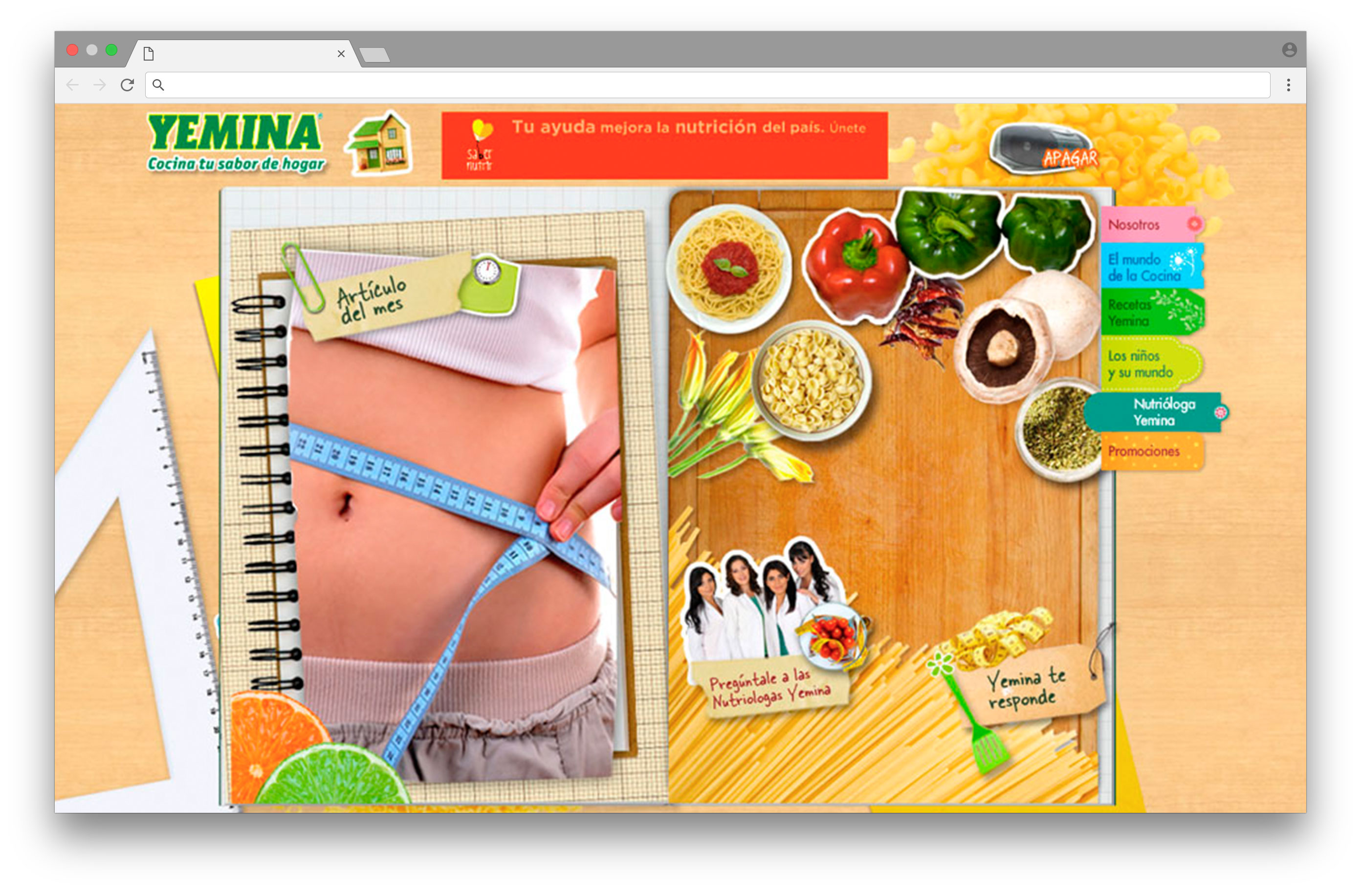 El objetivo de este sitio fue brindar una herramienta para las amas de casa en cuanto a que cocinar para su familia, con una base de datos de alrededor de 1000 recetas se generó un buscador por filtros para elegir la receta más adecuada para cada ocasión. A parte de tener juegos para niños y presentación de productos.